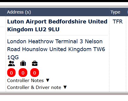 YES: Enables visibility of any general notes added by the controller or intended for the driver. These notes appear below the address section.