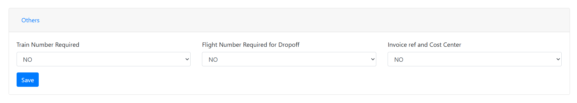 | Flight Number Required for Dropoff | Useful for airport dropoffs—makes the flight number a required input. |