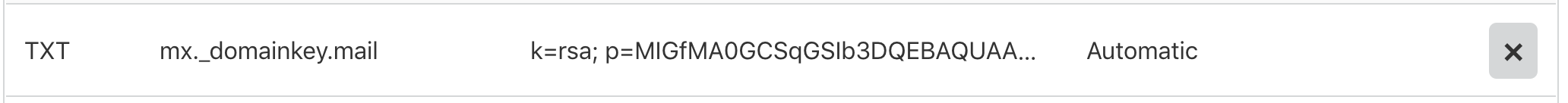 @ as the hostname when creating DNS records for the root domainAfter adding the first record, add another TXT record for mx._domainkey.mail.yourdomain.com. Some providers like Cloudflare may only show the subdomain portion.