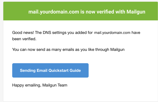 When everything is set up correctly, you'll receive a confirmation email from Mailgun: