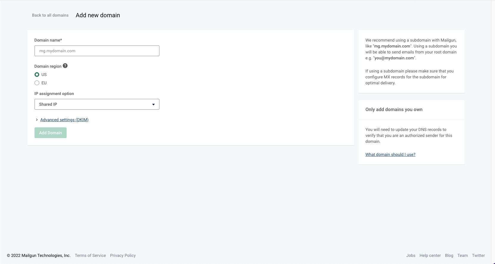 Before verifying a domain, you need to add it to Mailgun by following these steps: