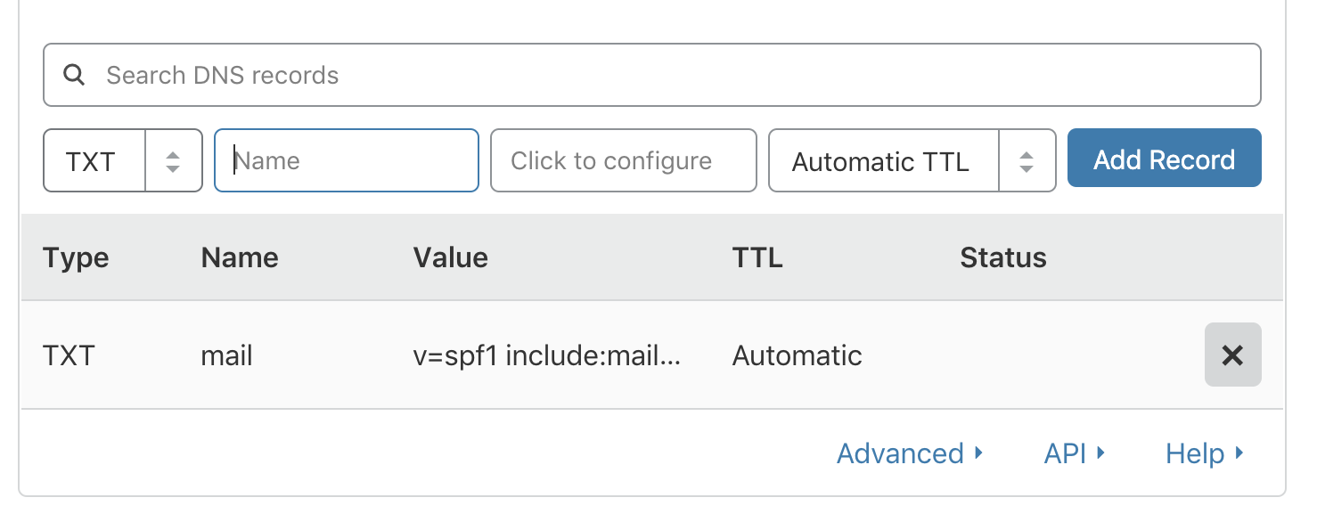 Note: If you already have an existing SPF record for this root domain, you cannot add another SPF record.
